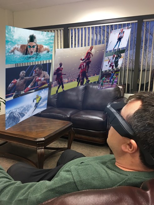 Imagine being able to watch Sports, Movies and your favorite TV shows on a 90″ High Definition screen without a TV. Enjoy up to 16 screens at any time filled with content and/or new innovations in TV guides, commerce, chat rooms, etc.